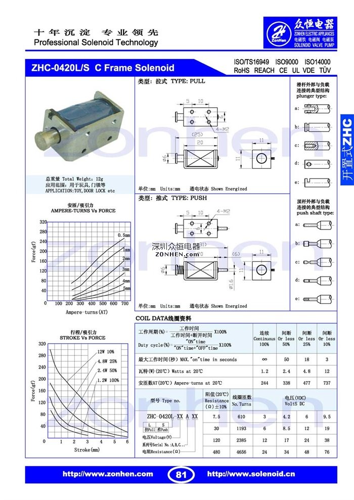 ZHC-0420 用于玩具, 門鎖等直線推拉式電磁鐵