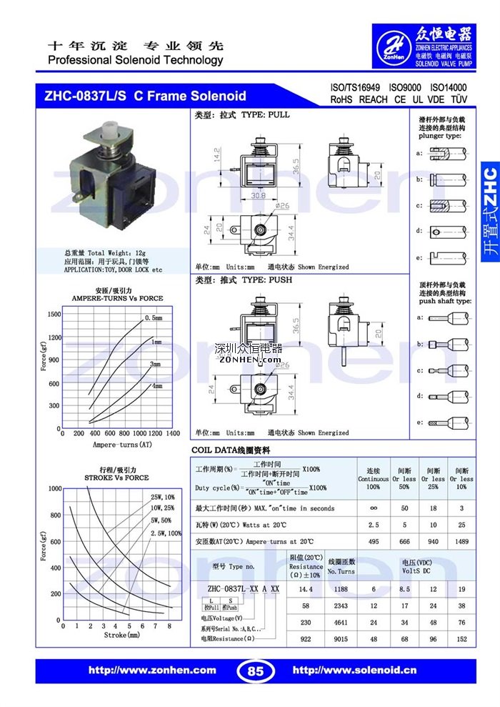 ZHC-0837 用于玩具,門鎖等直線推拉式電磁鐵