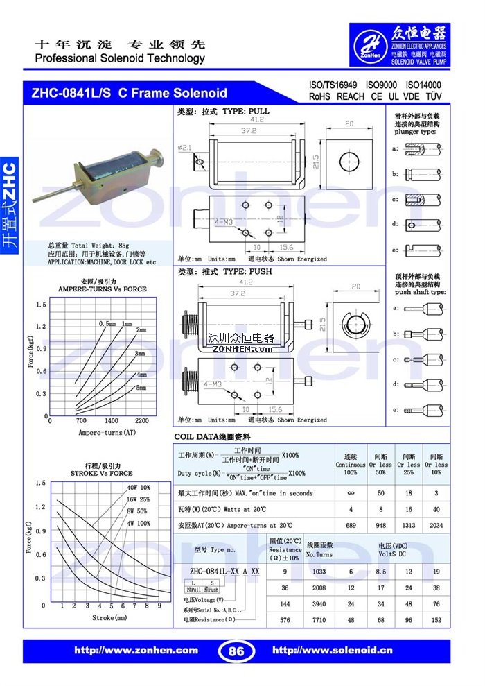 ZHC-0841 用于機械設(shè)備,門鎖等直線推拉式電磁鐵