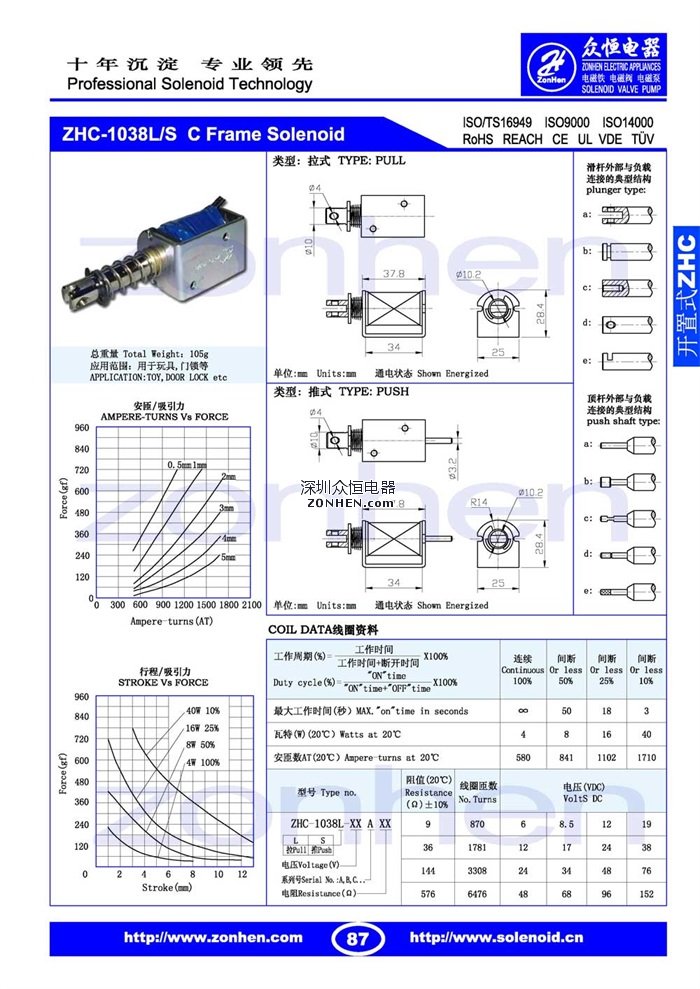 ZHC-1038 用于玩具,門鎖等直線推拉式電磁鐵