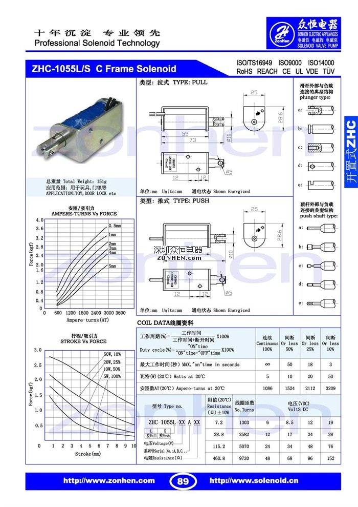 ZHC-1055 用于玩具,門鎖等直線推拉式電磁鐵
