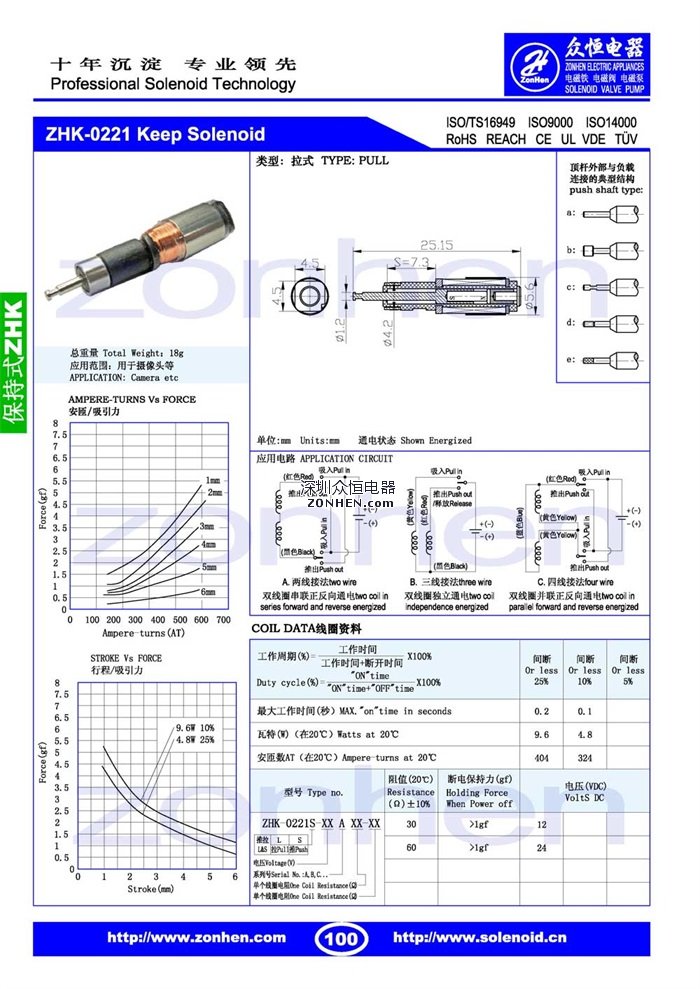 Stroke: 0-7.5mm, Force: From 0.3-0.6g according to differnet stroke and power.