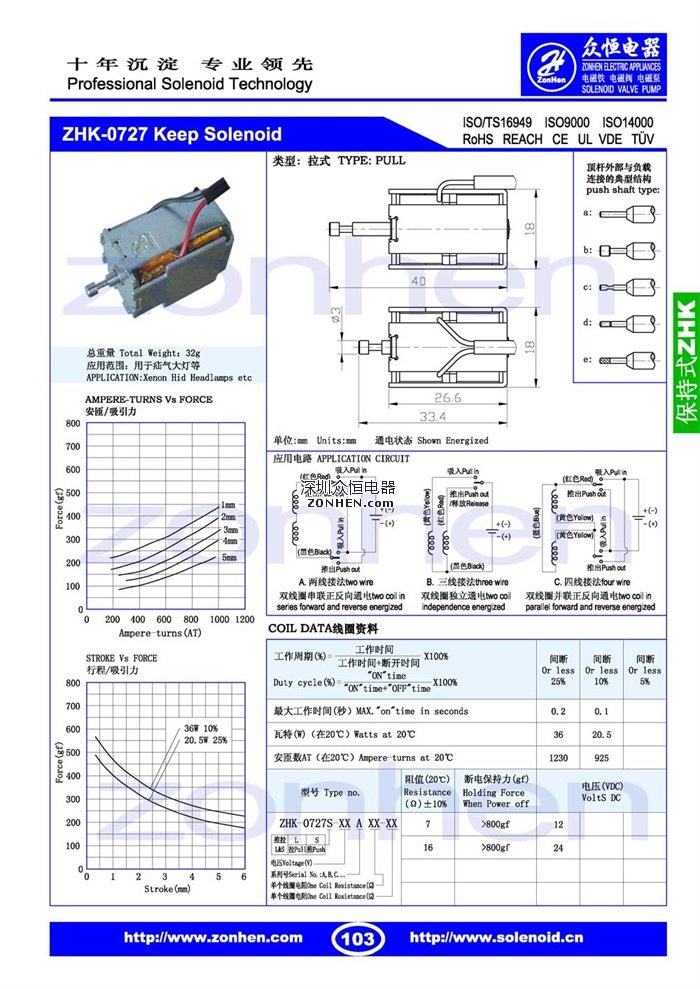 ZHK-0727 用于疝氣大燈等直線推拉保持式電磁鐵