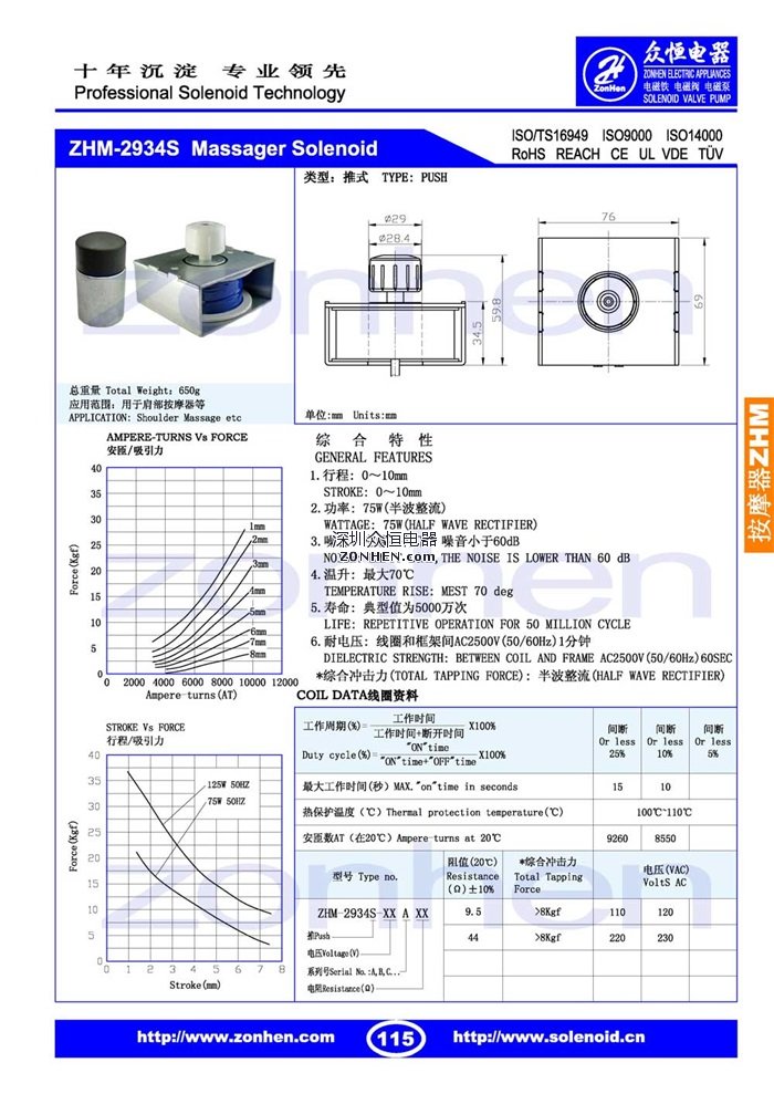 ZHM-2934 用于肩部按摩器等直線推拉式電磁鐵