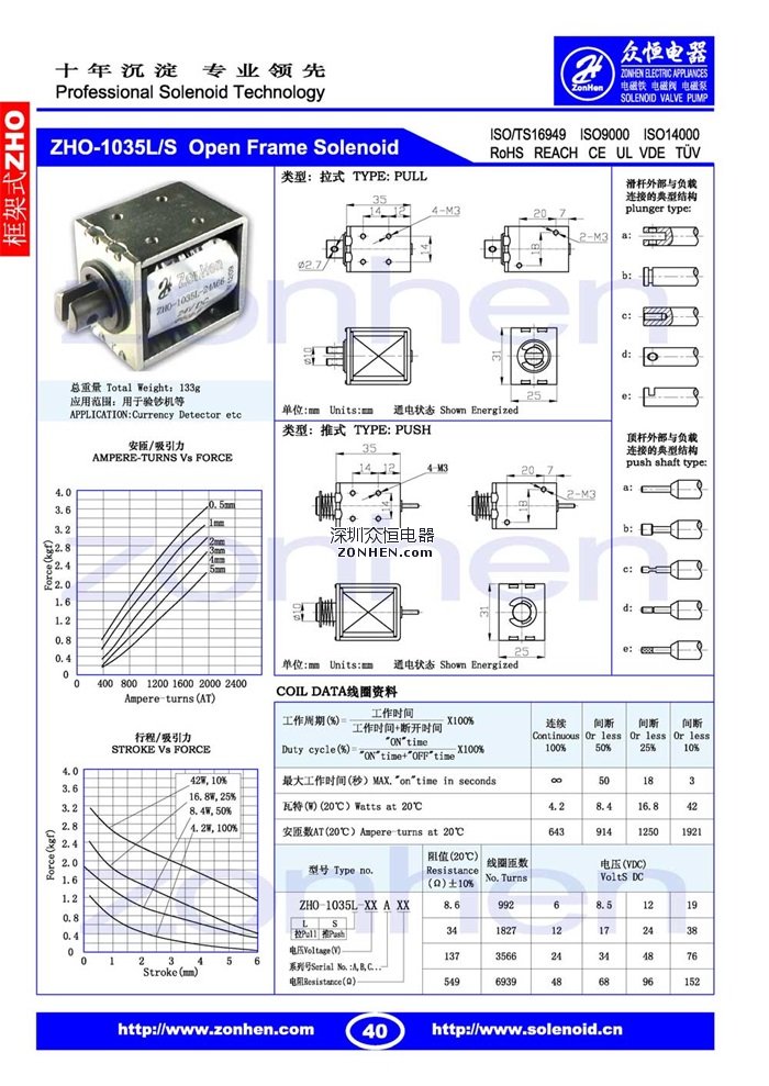 ZHO-1035 用于驗鈔機等直線推拉式電磁鐵