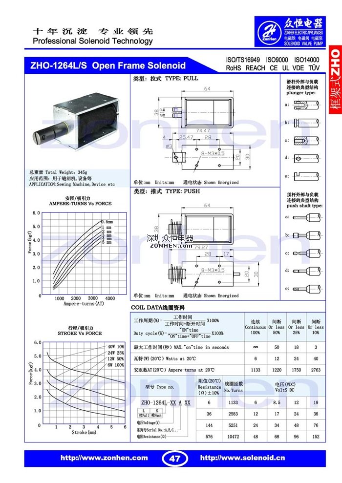 ZHO-1264 用于縫紉機(jī),設(shè)備等直線推拉式電磁鐵