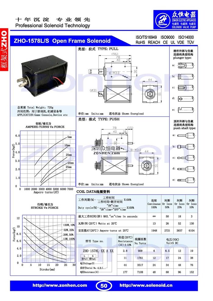 ZHO-1578 用于游戲機(jī),機(jī)械設(shè)備等直線推拉式電磁鐵