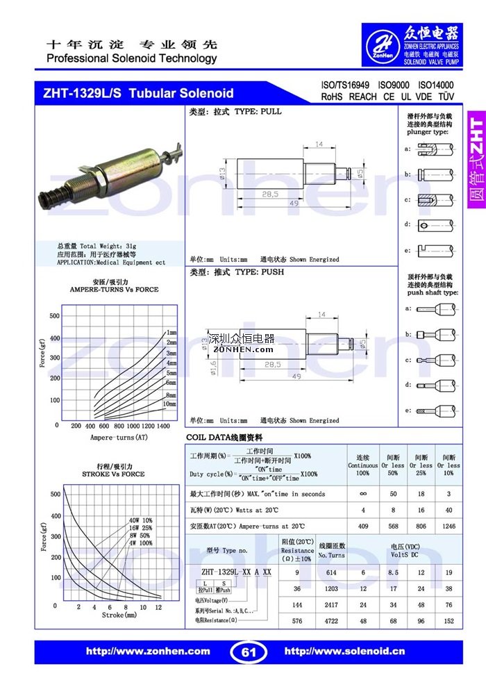 ZHT-1329 用于醫(yī)療器械等直線推拉式電磁鐵