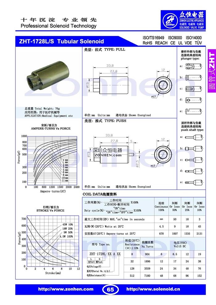 ZHT-1728 Turbular linear solenoid used for medical machinery