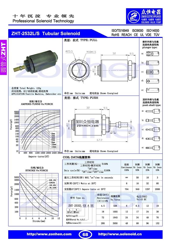 ZHT-2532 用于紡織機(jī)械,繡花機(jī)等直線推拉式電磁鐵