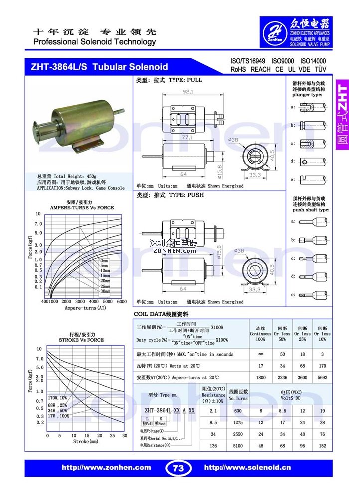 ZHT-3864 用于地鐵鎖,游戲機等直線推拉式電磁鐵