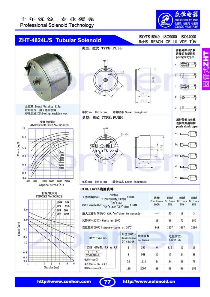 ZHT-4824 用于縫紉機等直線推拉式電磁鐵